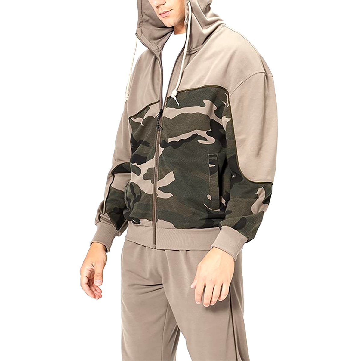 These tracksuits set contain a hooded sweatshirt and a pair of joggers. Features fashion camoflage design. Stretchy material allows greater mobility when you doing exercise.